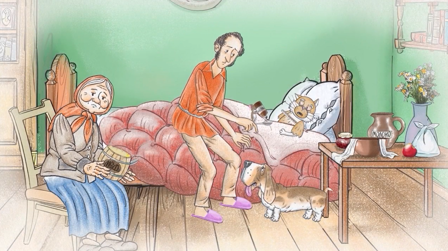 Задачей было создать ощущение погружения в другой, сказочный мир, в котором Пушкин будто бы учится быть собой. С помощью 3D-анимации невозможно было бы сделать подобное.