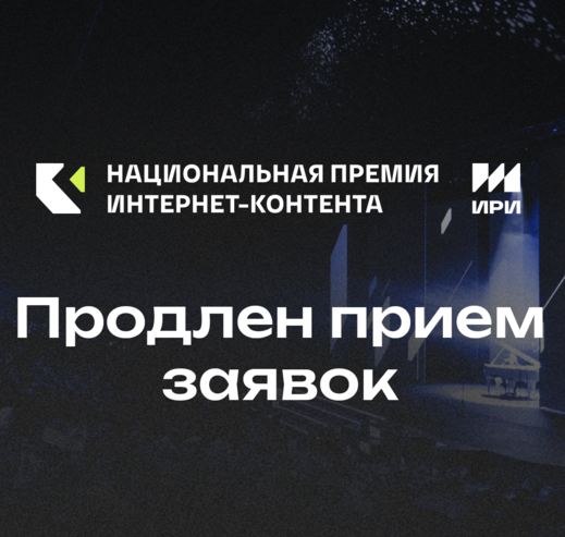 Институт развития интернета (АНО ИРИ) продлевает прием заявок на соискание IV Национальной премии интернет-контента до 10 февраля (23:59 по московскому времени).