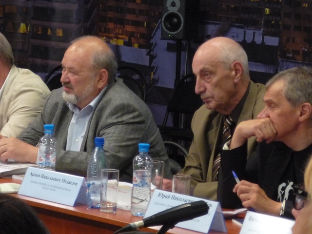 Поддержал его в этом и Юрий Арабов, отметивший, что стремительно растущий телевизионный сектор снизил планку для специалистов в области кинематографа, а это привело к тому, что ТВ формат сейчас пытаются перенести на большой экран. Ничего хорошего из данного процесса не может получиться по определению: когда главное – получить готовый продукт при минимальных финансовых и временных затратах, а не создать целостное аудиовизуальное произведение, ни о каком высоком художественном уровне речи идти не может. И в этом смысле «можно закрывать ВГИК хоть сегодня», поскольку обучить «телевизионным» навыкам можно за пару месяцев, а не тратить на обучение студентов годы. Однако, как считает Юрий Николаевич, «не нужно приравнивать кино к «лудению» сковородок». Наоборот, «надо развивать гуманитарное сознание».