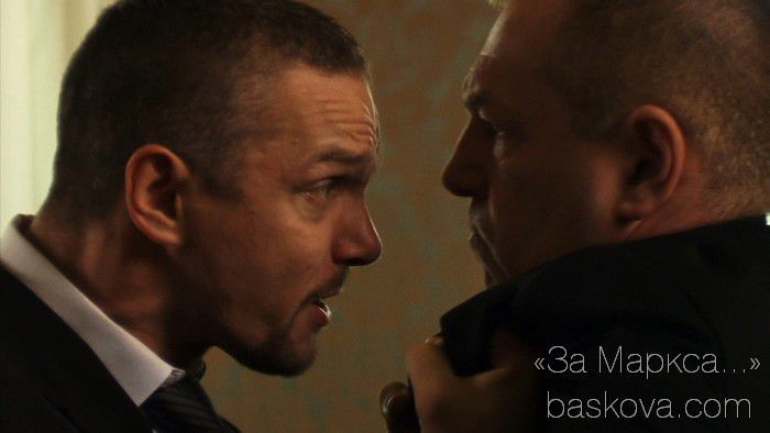 В фильме «За Маркса...» два главных героя – бригадир литейного цеха и лидер профсоюзного движения (Сергей Пахомов) и его главный враг – владелец завода (Владимир Епифанцев). Первый не собирался лезть на баррикады, но оказался там не ради престижа, а поскольку лично проникся всем происходящим и не смог вести себя как-то иначе. Второй – несказочный злодей, захлопывающий крышки гробов с такой же бесстрастностью, как если бы это был фирменный чехол от планшетника. «Все довольно просто – надо просто напугать власть. Страх – единственная возможность для власти начать думать», – сказала Светлана Баскова в одном из своих интервью. И выбрала, пожалуй, лучший тандем актеров, не впервые встречающихся на одном экране в качестве антагонистов, для воплощения этой идеи. Пугать власть в фильме будут не бунтом, а его возможностью. За что и поплатятся в итоге горой трупов и горькими слезами.