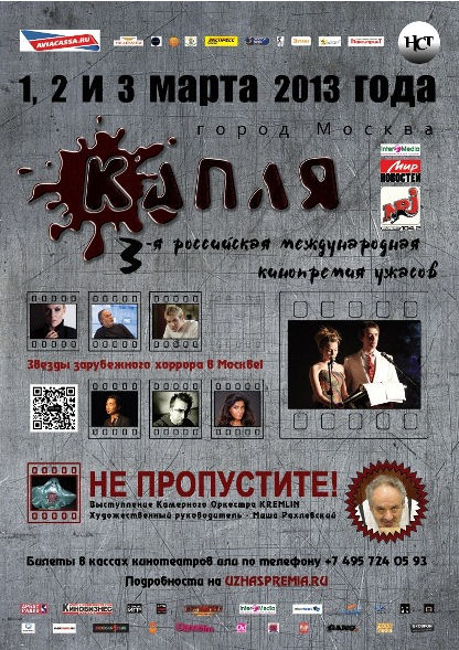 С 1 по 3 марта 2013 года в Москве пройдет фестиваль фильмов ужасов, а также уже ставшая традиционной церемония вручения Российской международной кинопремии ужасов «Капля».