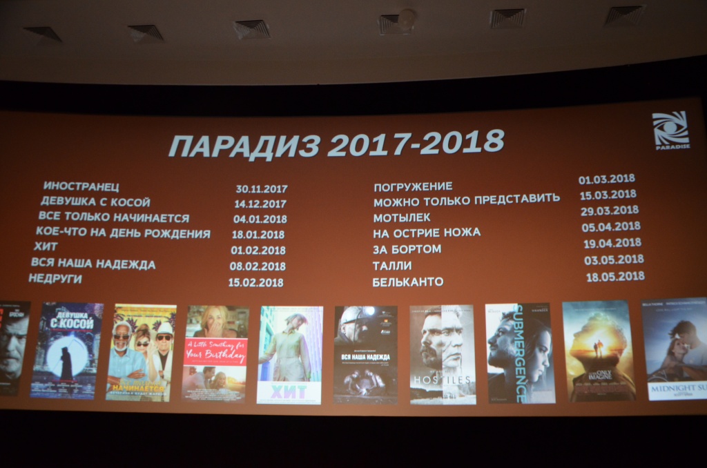 27 ноября 2017 года на 104 Кинорынке презентовала пакет своих релизов компания «Парадиз». Дистрибьютор бросил все усилия на представление и показ фильма «Девушка с косой» режиссера Ольги Поповой, поэтому по остальным проектам генеральный директор компании Геворг Нерсисян прошелся очень бегло. На конец 2017 и 2018 год заявлено 14 картин, среди которых авторские ленты и блокбастеры, комедии, мелодрамы, триллеры.