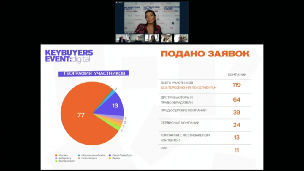 «С каждым годом мы видим положительную динамику кинорынка. Только с прошлого года, когда впервые мероприятие прошло онлайн, число представленных проектов увеличилось – если в 2020 их было 350, то уже сейчас зарегистрировано больше 400. В этом году также сделан акцент на копродукцию. Хочу заметить, что в третьем квартале 2021 года Минкультуры планирует объявить конкурсный отбор проектов миноритарной копродукции для государственной поддержки. И мы надеемся, что проекты, которые будут представлены на Key Buyers Event, примут участие в конкурсе», - сказала руководитель департамента кинематографии и цифрового развития Министерства культуры РФ Светлана Максимченко на пресс-конференции.