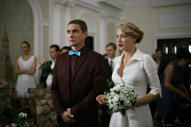 Возле крупнейшего в стране спортивного комплекса (сотрудники стадиона почему-то строго предупредили о том, что название сооружения нельзя произносить) выстроились в ряд роскошные авто со свадебным лимузином впереди. Идет подготовка к съемкам эпизода «приезд новобрачных на свадебную регистрацию». И Оксане Акиньшиной с Денисом Никифоровым приходится несколько раз выходить из белого лимузина, а массовке играть приветствия и поздравления. Среди «подружек» невесты ярче всех смотрится Марика (телеведущая и модельер Мария Кравцова). И во время пауз она весело общается с коллегами, с журналистами.
