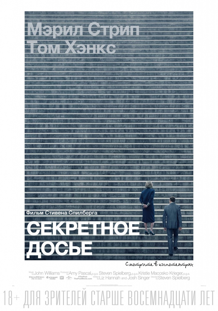 1 февраля 2018 года в российский прокат выходит основанный на реальных событиях фильм «Секретное досье» (дистрибьютор – компания UPI). Лауреаты премии «Оскар» режиссера Стивен Спилберг и актеры Том Хэнкс и Мерил Стрип впервые собрались вместе, чтобы рассказать невероятную историю Кэтрин Грэм, первой женщины-издателя газеты «Вашингтон пост», и редактора Бена Брэдли. Они вступают в гонку с «Нью-Йорк таймс» за право пролить свет на государственный тайны, скрывавшиеся более 30 лет. Смотрите первый дублированный трейлер, который проливает свет на то, чем придется рискнуть журналистам, чтобы мир узнал правду.