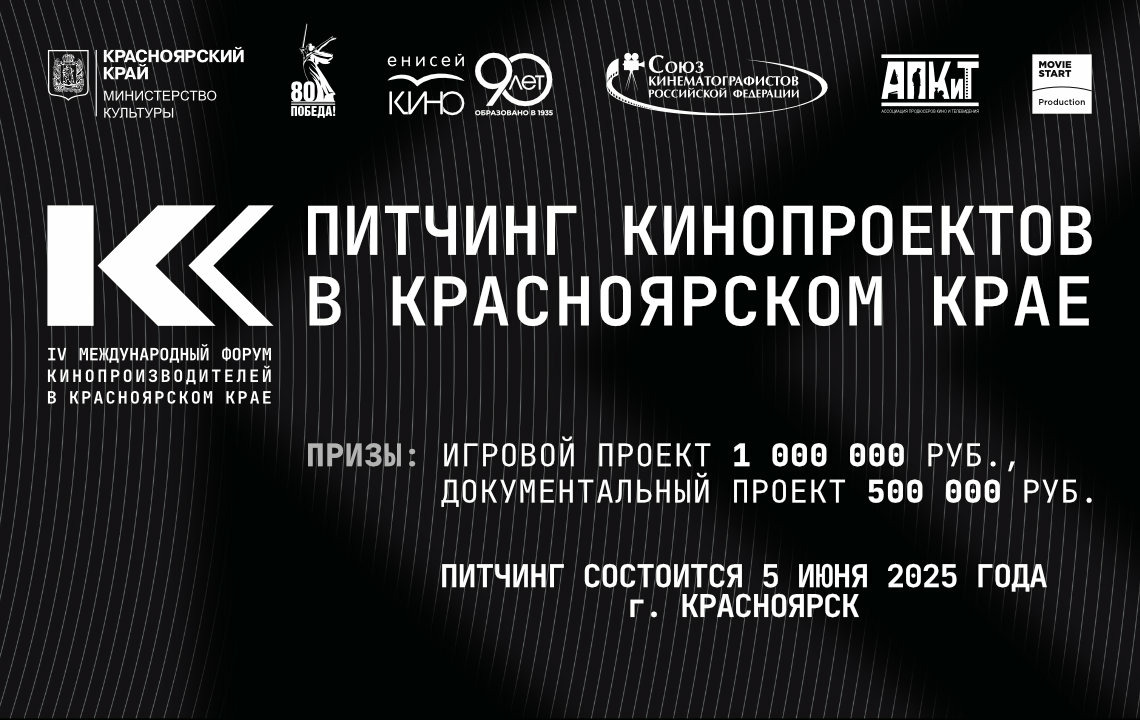 С 15 апреля по 11 мая включительно открыт приём заявок на Красноярский питчинг кинопроектов, который пройдет 5 июня 2025 года в рамках IV Международного форума кинопроизводителей в Красноярском крае.
