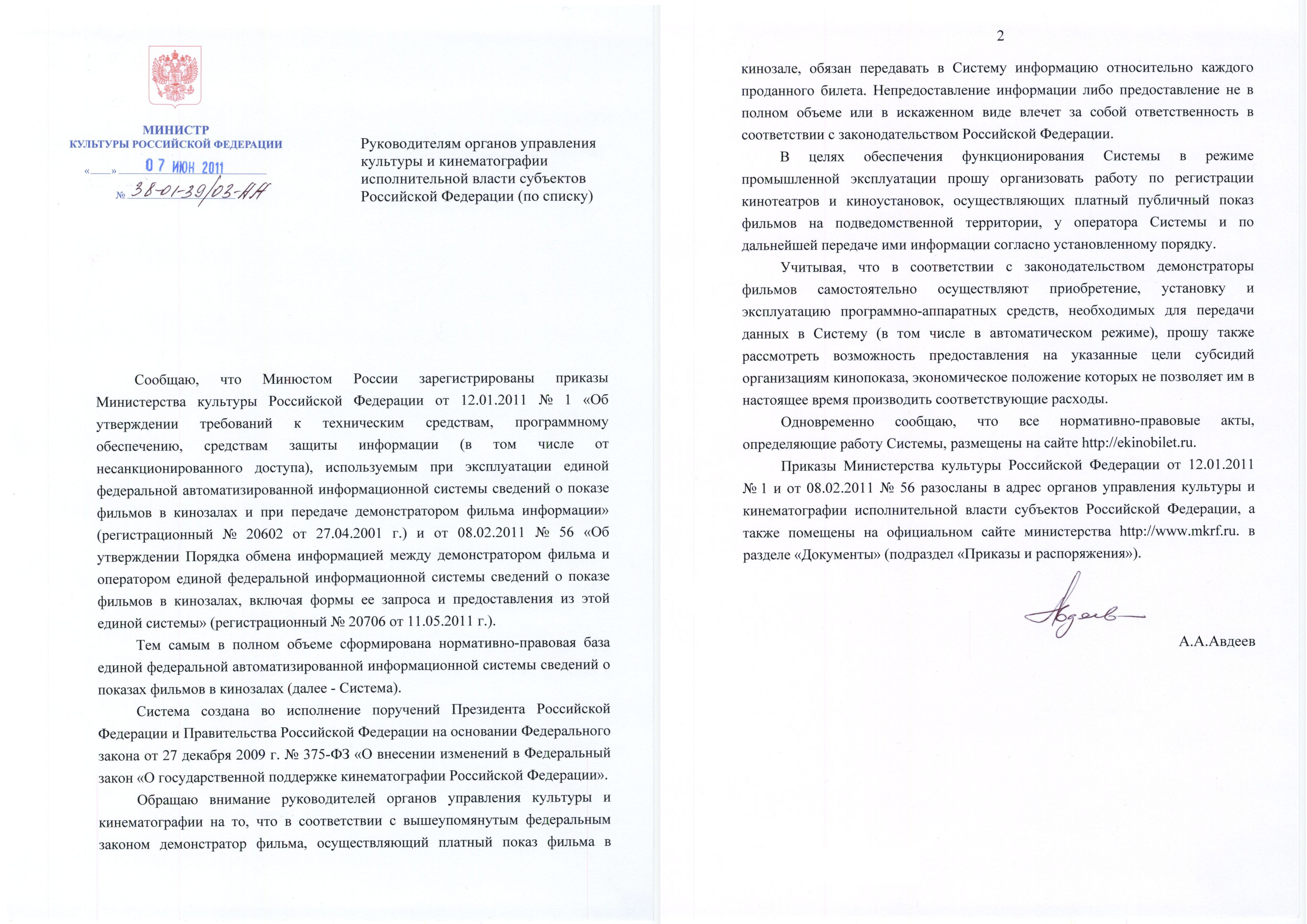 16 января 2013 18:12Их разыскивает ЕАИСВ последнее время в отечественной кинематографии произошло столько перемен, что вопрос об обязательной отчетности кинотеатров перед ЕАИС стал забываться. Между тем Министерство культуры предпринимает новые действия, для того, чтобы система заработала. Так, с 16 января 2013 года началась рассылка циркулярного письма всем кинотеатрам, зарегистрированным в ЕАИС, но не предоставляющим данные.Подробнее12 сентября 2012 12:03Госдума одобрила в первом чтении штрафы за ложные данные по продажам кинобилетовВо вторник, 11 сентября 2012 года Государственная Дума РФ одобрила в первом чтении внесенный 22 июня Правительством РФ законопроект, вводящий штрафы за неверную информацию или ее непредоставление кинотеатрами и кинозалами в единую федеральную автоматизированную систему сведений о показе фильмов (ЕАИС). Согласно законопроекту, штрафные санкции предлагается установить в размере от 100 до 200 тысяч рублей.Подробнее23 ноября 2011 17:04Поправки к закону о едином электронном билете будут рассмотрены ГосдумойПосле заседания правительственного Совета по кино, состоявшегося 21 ноября 2011 года, генеральный директор компании «Дирекция кино» Анатолий Максимов заявил журналистам, что закон о едином электронном билете, так и не заработавший в полную силу, будет доработан Госдумой текущего созыва. Он объяснил, что закон так и не заработал в полную силу из-за нежелания кинотеатров вступить в ЕАИС: «Штрафы для них - смехотворные, от 3 до 5 тысяч рублей. За недельную выручку они могут купить пожизненные штрафы. Мы надеемся доработать этот момент».Подробнее23 сентября 2011 13:07Сергей Мокров: «Ответственность за передачу данных кинотеатрами в ЕАИС теперь и на региональных властях»С наступлением осеннего оживления на рынке киноиндустрии интернет-портал ПрофиСинема снова обращается к разработчикам единой федеральной автоматизированной информационной системы сведений о показах фильмов в кинозалах (ЕАИС), чтобы узнать, какие результаты достигнуты по итогам летнего сезона.Подробнее10 июня 2011 17:12Единый кинобилет: письмо подписано, что дальше?7 июня 2011 Министом культуры РФ Александром Авдеевым было подписано циркулярное письмо руководителям органов управления культуры и кинематографии исполнительной власти субъектов Российской Федерации, информирующее данные организации о регистрации Минюстом России двух приказов Министерства культуры, касающихся эксплуатации системы ЕАИС и порядка обмена информацией между демонстратором фильма и оператором системы. Какое воздействие окажет эта мера, мы выяснили у Сергея Мокрова.Подробнее12 мая 2011 17:47Минюст дает доброВо исполнение поручения Президента Российской Федерации Министерством культуры Российской Федерации создана и функционирует единая федеральная автоматизированная информационная система сведений о показах фильмов в кинозалах (ЕАИС). Она вступила в силу согласно Постановлению Правительства РФ от 18 октября 2010 года N 837. И вот, 11 мая 2011 года в Министерстве Юстиции РФ прошел регистрацию приказ «Об утверждении Порядка обмена информацией между демонстратором фильма и оператором единой федеральной информационной системы сведений о показе фильмов в кинозалах» (ЕАИС).Подробнее29 октября 2010 13:57Сергей Мокров: «До 2015 года все кинотеатры, включая даже киноустановки в местных клуба