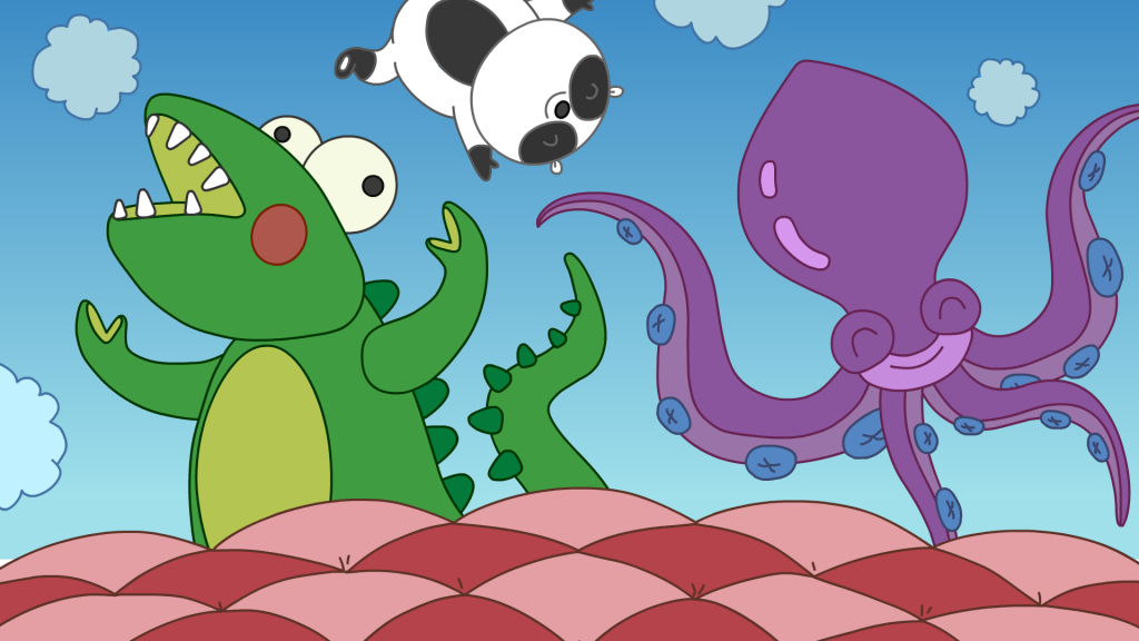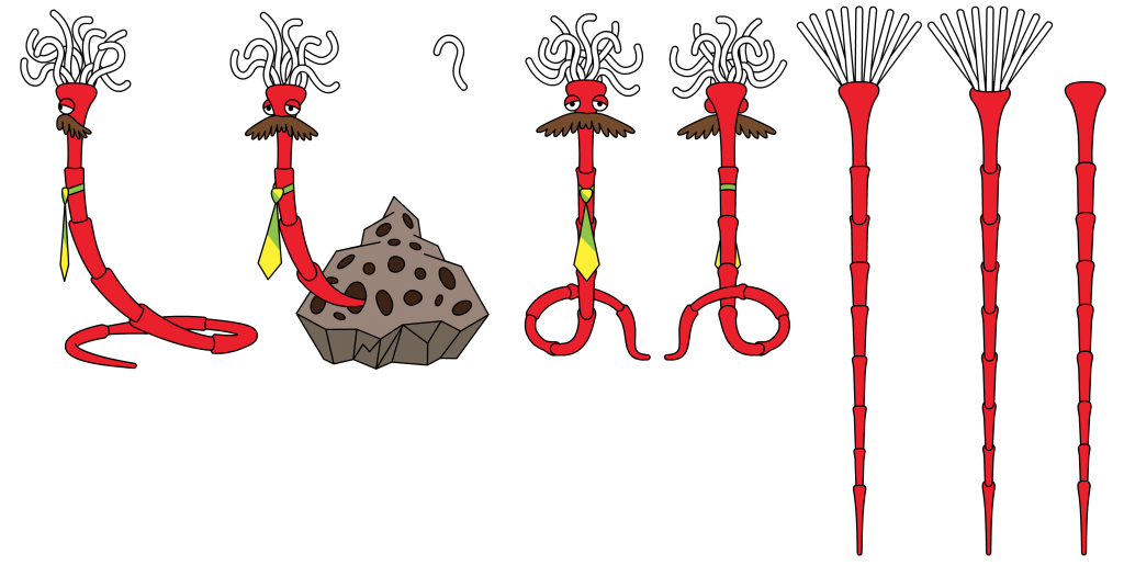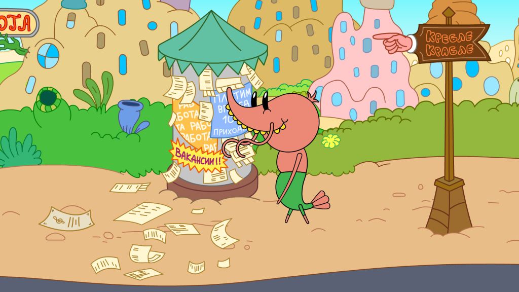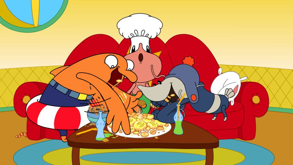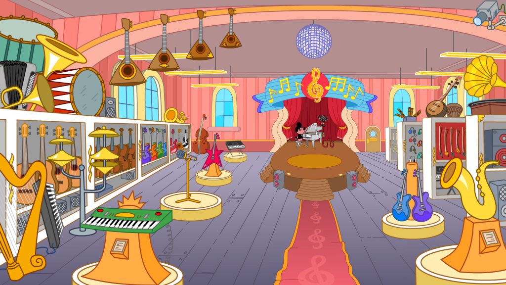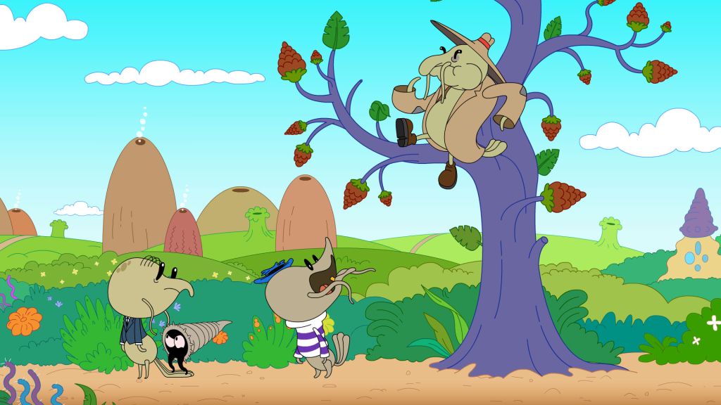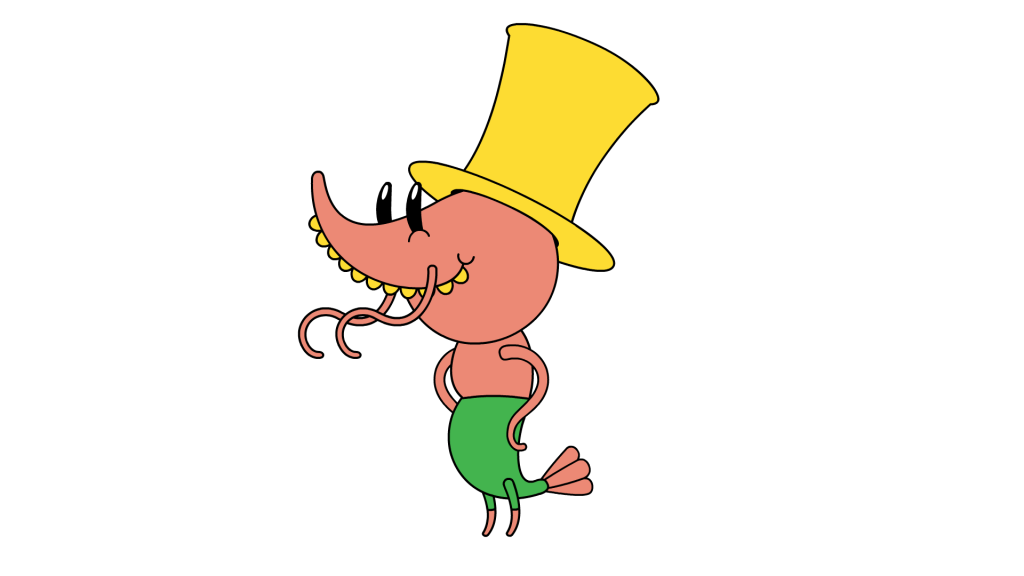 Трое друзей работают в музыкальном магазине «Музыкальный червяк» у господина Червяка, Шримпи играет на трубе и выступает в магазине, когда Червяк устраивает вечеринки или праздники.