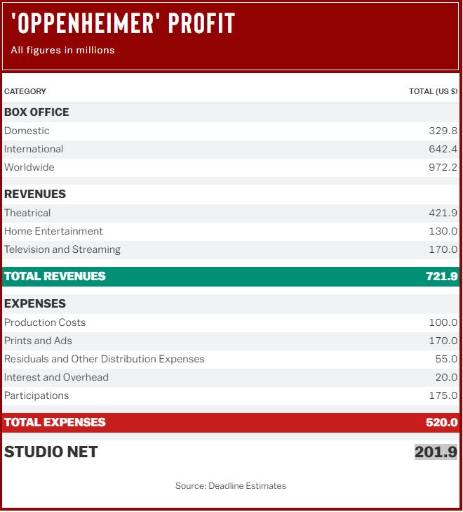 Один из самых кассовых фильмов прошлого года — биографическая драма «Оппенгеймер» Кристофера Нолана, собравшая почти один миллиард долларов в прокате, принесла чистую прибыль Universal в размере $200 млн.