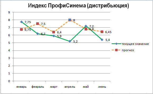 Значение июньского индекса в дистрибьюции – 5,4 , в кинопоказе – 5,4
