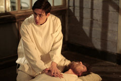 Будни морфиниста показаны настолько реалистично, что порой прошибает холодный пот. И дело отнюдь не в фирменной балабановской расчлененке, без которой в фильме не обошлось. (Когда во время ампутации ноги Анатолий Лукич в исполнении Андрея Панина спрашивает у Полякова: «Может, не надо вторую?», то ему вторит голос из зала: «Давайте не надо!». Примерно то же происходит, когда на экране появляется титр «Трахеотомия» - несчастный выкрик «Ой!» вызывает бурную реакцию зала.) Секрет этой цепляющей реалистичности – в режиссерском мастерстве Балабанова вкупе с блистательной игрой Леонида Бичевина (этот творческий тандем, без сомнения, возвел картину в ранг высокого искусства). Дрожь доктора, страждущего вколоть себе очередную дозу морфия, просто вопиюще убедительна, - она не просто зрима (Станиславский наверняка бы сказал: «Верю»), но настолько натуральна, что аж пробирает до костей. И, только пустив себе в вену убийственное зелье, Поляков расцветает. Впечатление – неизгладимое, ведь не каждый день доводится наблюдать такой уровень актерской игры.